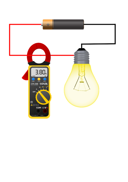 La mesure à l'aide d'un ampèremètre nécessite de couper le circuit pour y insérer l'appareil.